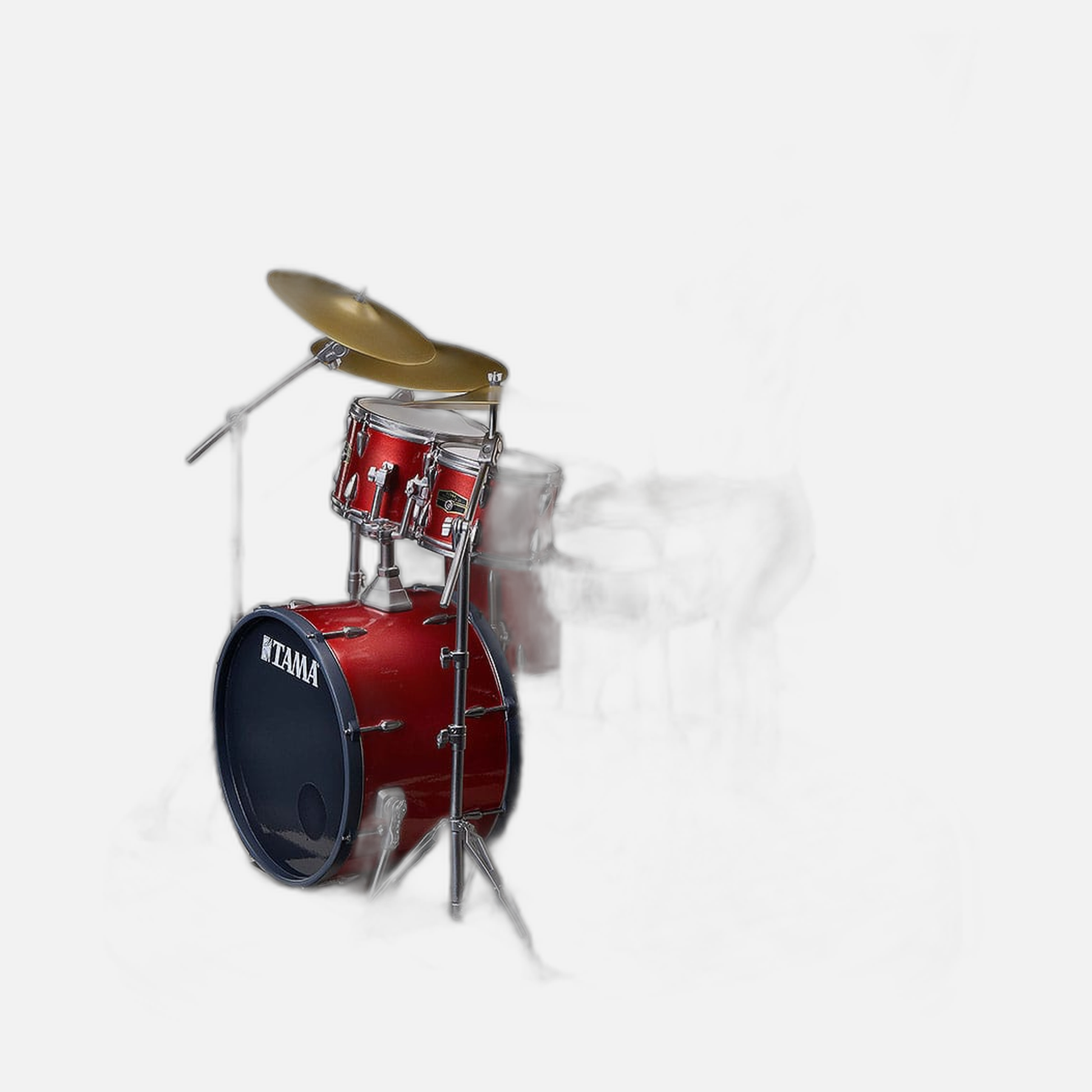 The intricately detailed drum set, complete with authentic TAMA branding, showcases the commitment to quality and authenticity.