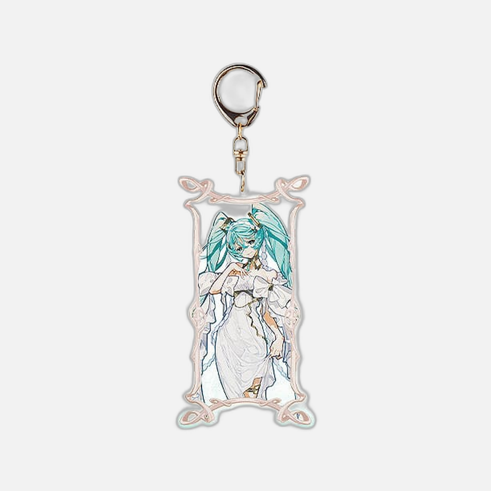 Introducing the Character Vocal Series 01: Hatsune Miku Acrylic Keychain, an enchanting piece that captures the essence of this beloved virtual idol in a way that delights both collectors and fans alike. Designed by the renowned illustrator Yoneyama Mai, this keychain features Miku adorned in a captivating goddess-like outfit, elegantly set against a beautifully crafted background that evokes a dreamlike atmosphere. The vibrant colors and intricate details of the original artwork have been meticulously reproduced, making this keychain not just an accessory but a celebration of artistry and fandom.