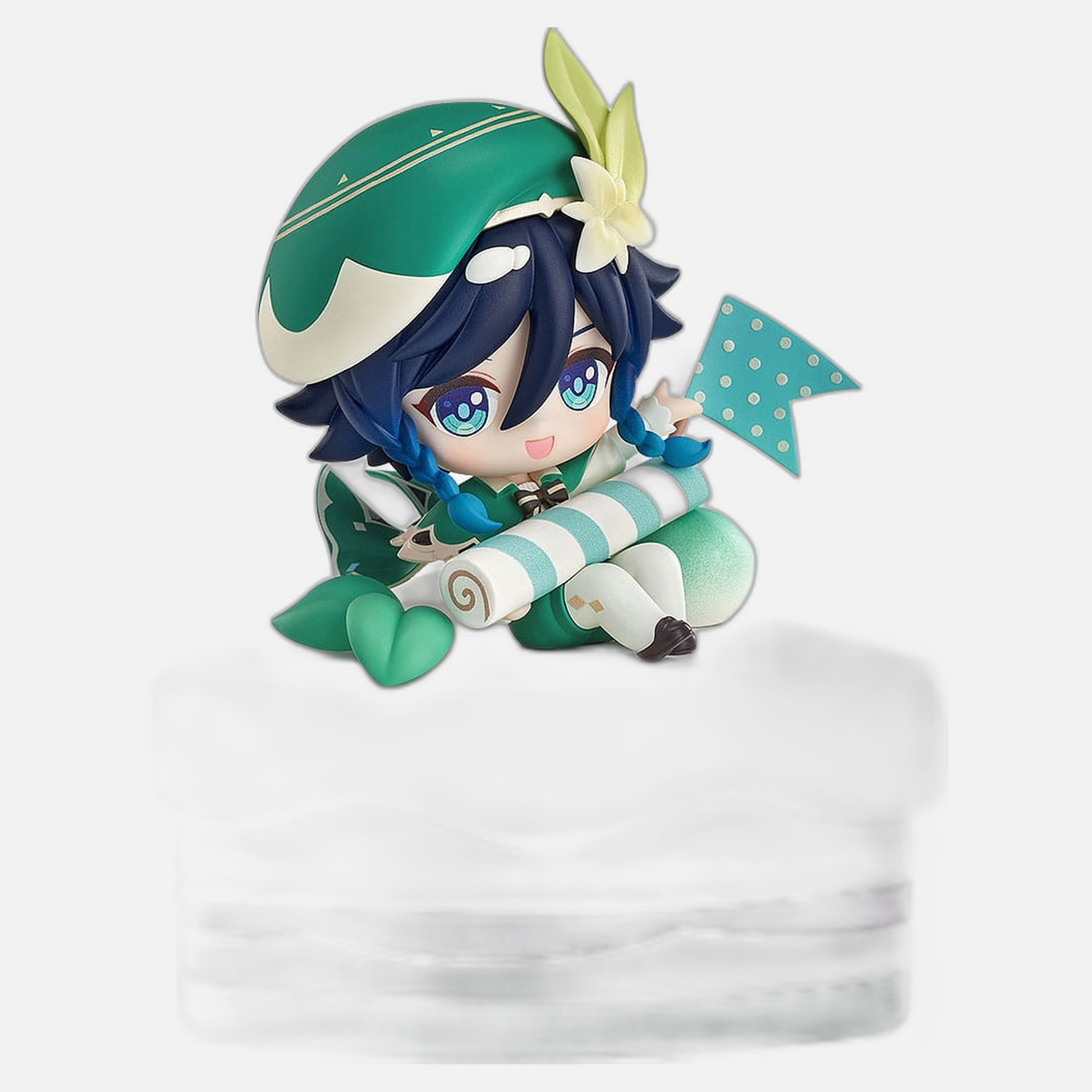 Unleash your love for Genshin Impact with the enchanting Venti Chibi figure! This charming rendition captures the whimsical spirit of everyone's favorite bard, complete with a delightful cake-inspired base that doubles as storage.