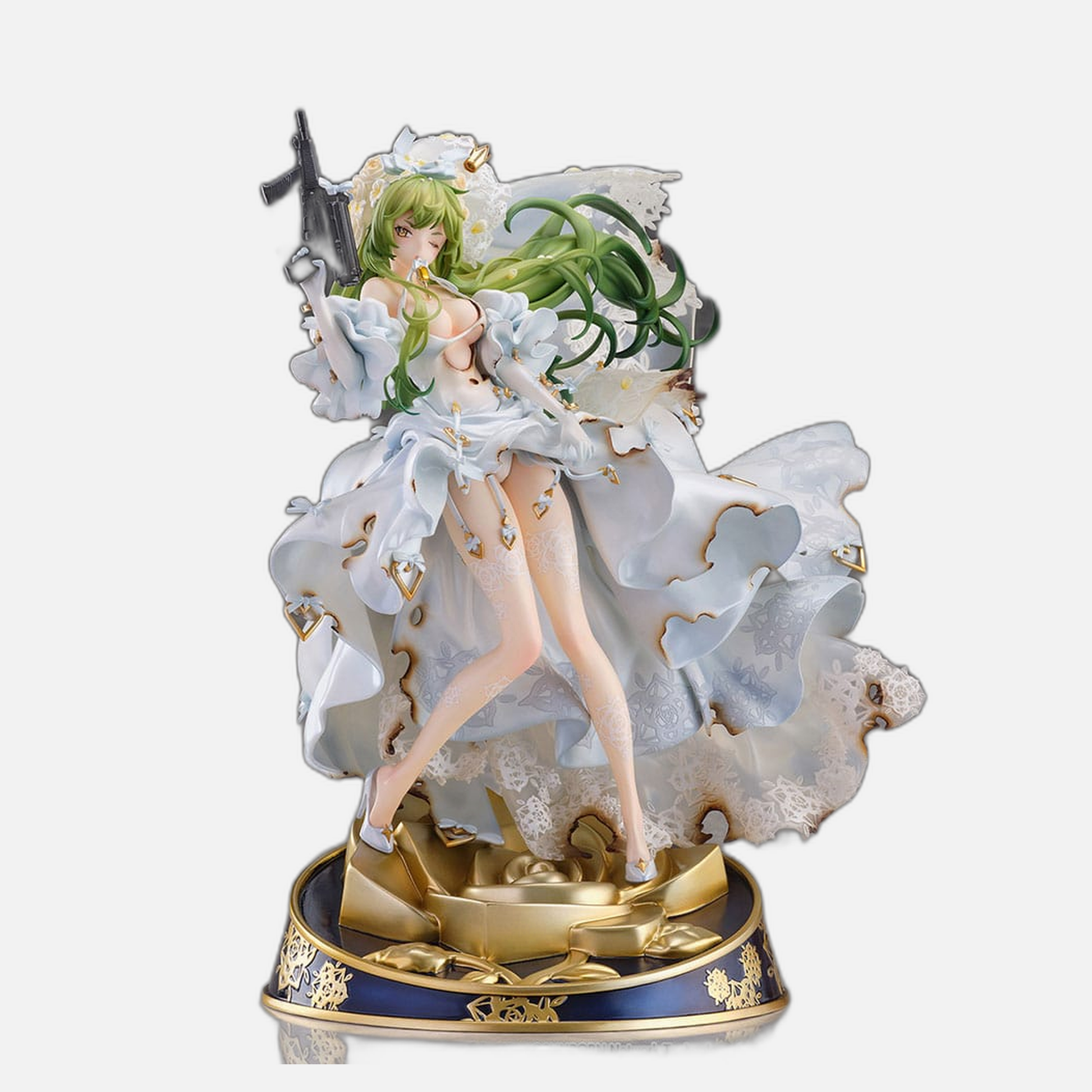 Immerse yourself in the world of "Girls' Frontline" with the stunning M950A Wounded Ver. statue! This exquisite piece captures the intricate beauty of a character caught between elegance and turmoil, her damaged wedding dress telling a captivating story.