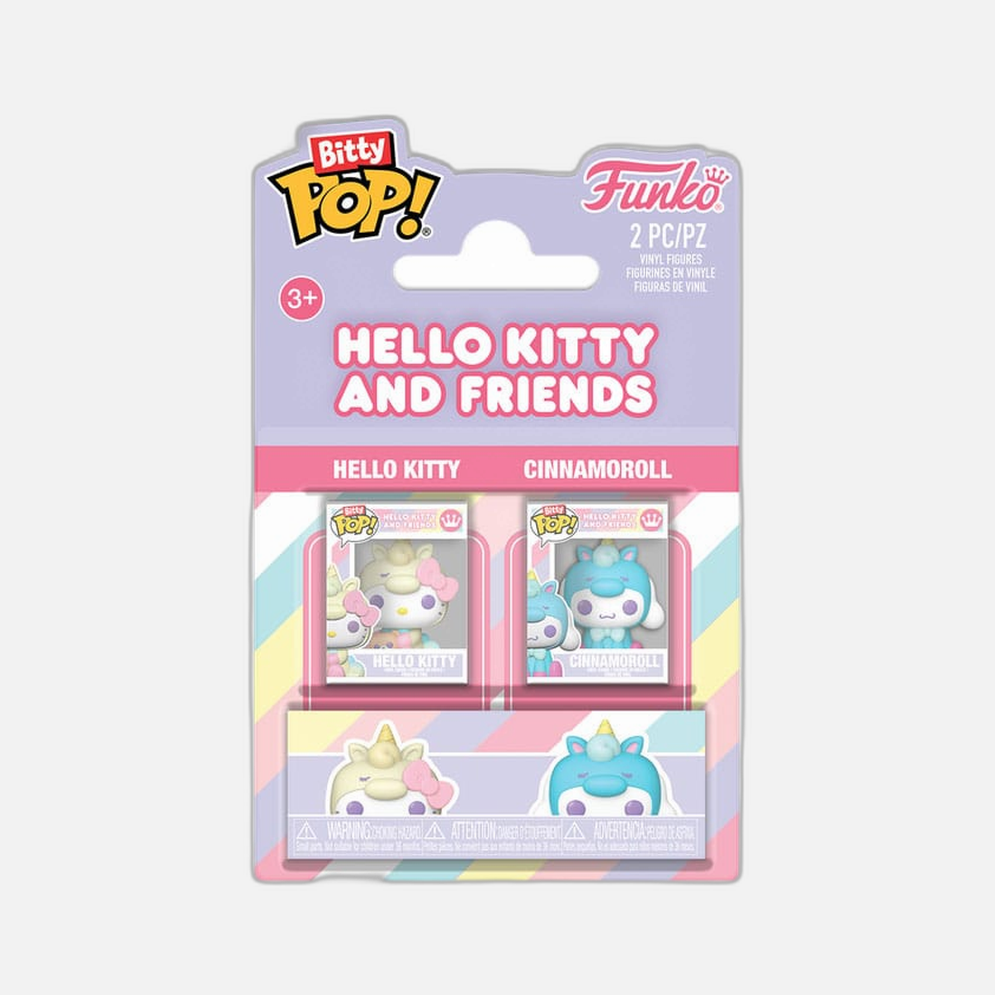 Bring home the adorable charm of Sanrio with the Hello Kitty Bitty POP! Vinyl Figure 2-Pack! This delightful duo features Hello Kitty and her sweet friend Cinnamonroll, ready to brighten up your collection.