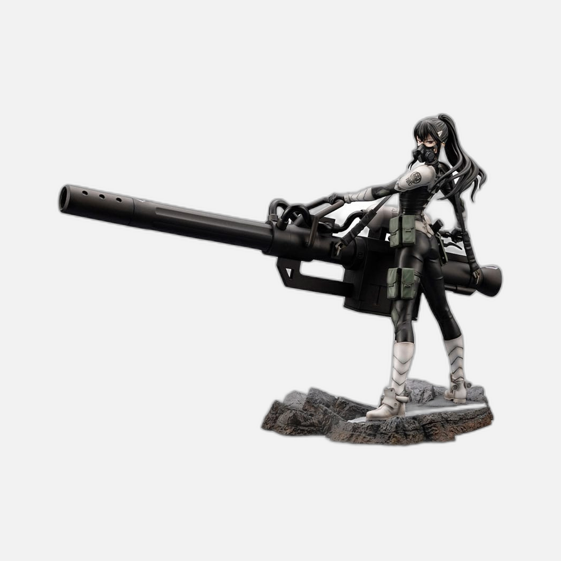 What truly sets this statue apart is the imposing presence of Mina's massive personal cannon, which she wields with confidence and skill. The cannon is an awe-inspiring feature, dwarfing her in size and representing the epic scale of the battles she faces. Each contour and component of the weapon has been faithfully recreated, right down to the complex shapes and text engravings that add an extra layer of authenticity. As you admire the figure from different angles, the attention to detail is evident, reminding you of the thrilling moments from the anime that inspired this piece.