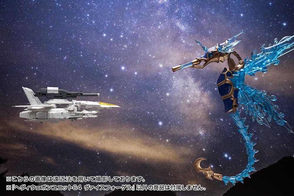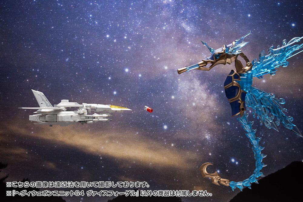Heavy Weapon Unit 64 Weiss Vogel! This versatile model kit features dynamic wings that can transform from sleek forward-swept to powerful backward-swept designs.