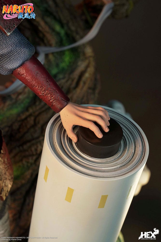 - **Intricate Base Design:** Perched on a base reminiscent of the Hokage Residence, the pedestal is graced with vine details and the emblem of the Senju clan at its heart. This unique design element infuses the piece with historic significance and artistic flair.