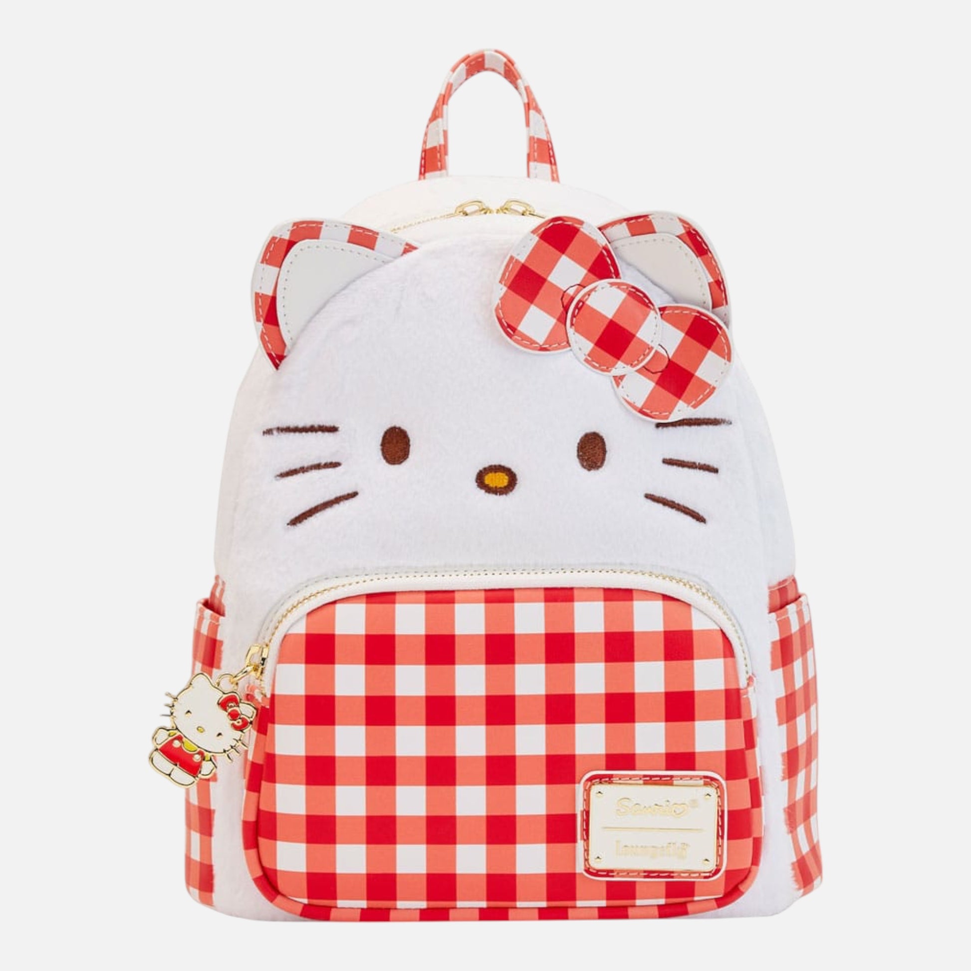 Embrace the playful spirit of Sanrio with this adorable Loungefly mini backpack. Featuring an irresistible Hello Kitty Gingham print, it's a delightful nod to one of the most beloved characters ever. Whether you're hitting the town or shaking up your everyday look, this bag brings a whimsical touch to any ensemble.