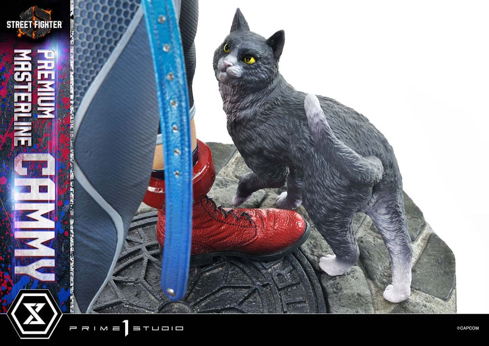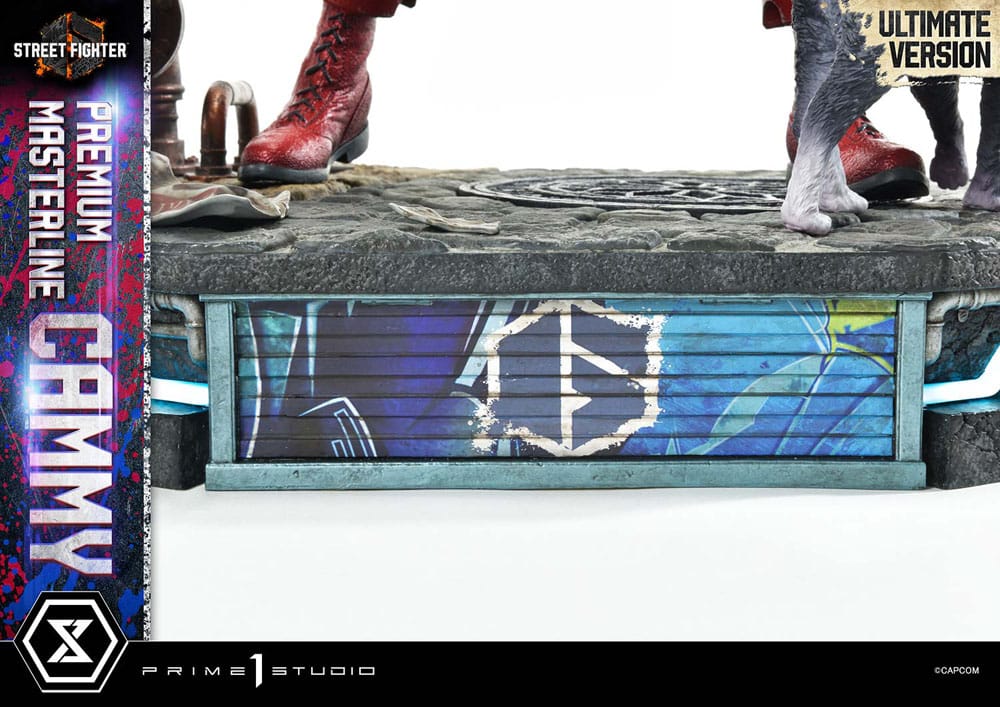 "We found ourselves, now we fight to defend our newfound lives" Prime 1 Studio is very proud to present the next addition to the Premium Masterline, the long-awaited 1:4 scale PMSF6-01UTS Cammy Ultimate Bonus Version from Street Fighter 6! With the arrival of the sixth installment of one of the world's most legendary fighting games, Prime 1 Studio is delivering you yet another jaw-dropping 21 inches piece of art, this time around featuring none other than Cammy White, a fierce member of the British special forces of Unit Delta Red. Over the years, she's become a beloved and enduring icon in the Street Fighter series, and we are thrilled to be bringing her to life. Cammy is meticulously crafted in her brand-new look, featuring her new civilian outfit, gone is the iconic leotard, she now wears a bright cropped blue jacket with the Union Jack, the flag of Great Britain painted on the back, and a midriff-baring crop top and tight, stretch fabric workout leggings, still ready for combat if the need arises, as represented with her crimson gloves. As always, our sculptors and painters go to great lengths to texture and paint every inch perfectly. The base features the cobblestone streets of Britain, featuring LED illumination - and let's not forget Cammy's cat, who always seems to be lurking around after each victory! The Ultimate Version takes this already stunning statue to a whole different level. We are adding a full swappable bust for Cammy, featuring her with crossed arms as she stretches and gets ready for an encounter. A separate stand features special effects that can be placed behind her, as well as a bust stand. The base also featured a variant of the "6" logo. When you order the Bonus Version from our official online store or any authorized distributor, you will also receive a cool logo stand featuring graffiti of her name. This beautiful Cammy statue is a must-have for any Street Fighter enthusiast. Pre-order the PMSF6-01UTS Cammy Ultimate Bonus Version now, while quantities last, and let Cammy's indomitable spirit inspire your collection! Specifications: - Statue Size approximately 21.6 inches tall [H:55cm W:38cm D:32cm] - Effect Wall Size approximately 24.1 inches tall [H:62cm W:49cm D:12cm] - Street Fighter 6 themed base - Two (2) Swappable Bust (Normal & Folding Arms) - One (1) Bust Stand - One (1) Effect Wall - LED light-up function on base - One (1) Cammy Graffiti Logo Stand [BONUS PART]