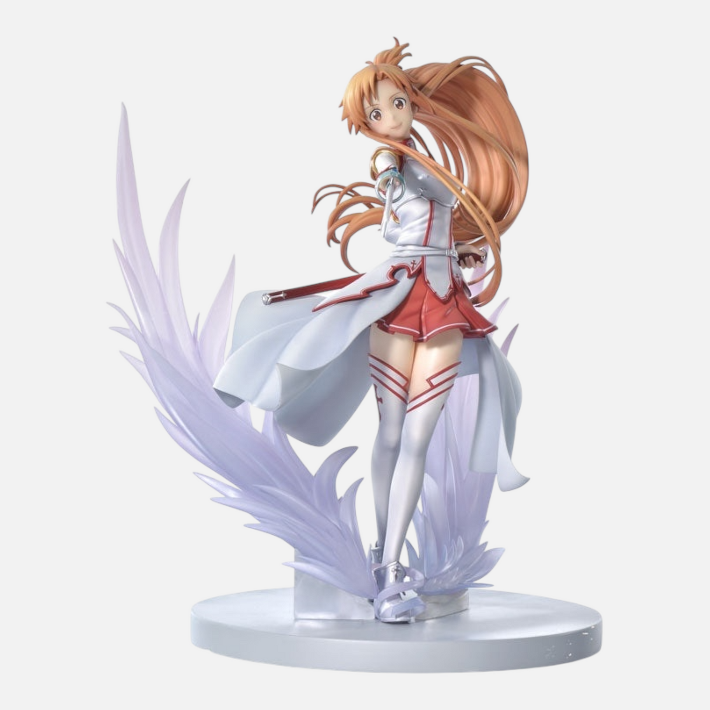 Crafted with meticulous attention to detail, Asuna stands 28 cm tall in a striking pose that captures her legendary speed and grace. Her flowing hair and costume are intricately molded to highlight her swift movements, while her silvery white rapier seamlessly extends from her arm, embodying the essence of her anime persona.